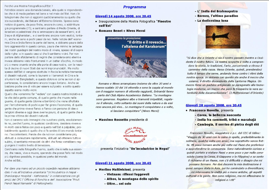 Serata inaugurale. Alcune foto dell'incontro con Nives Meroi e Romano Benet. Presente anche il presidente dell'Associazione Friuli Mandi Nepal Namastè, Massimo Rossetto.