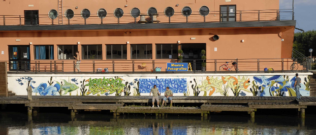 Detto ciò, arrivo al punto-murales. Il Marinaretto che cos'era? Un edificio così aggettivabile: decadente, al limite dell'esteticità, inutile e inutilizzato. Ho usato il tempo imperfetto perché, a un certo punto, sono arrivati dei ragazzi che l'hanno reso un luogo frequentabile, l'hanno ripulito da melma, acqua, muffa, umidità e, di sicuro, da qualche non simpaticissimo topino e scarafaggini annessi. Insomma, gli hanno dato un senso. Si sono permessi, in cambio del lavoro da pochi riconosciuto, di dargli un tocco che li rappresentasse e che rappresentasse noi, i giovani, e le nostre potenziali capacità creative. Che rappresentasse, insomma, un angolo, l' unico, in cui si potesse dare sfogo a quella fantasia che il paese di certo non stimola.